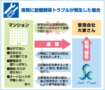 7.近隣苦情・不審者等の対応については、電話にて状況確認後、後日管理会社・大家さん対応となります。